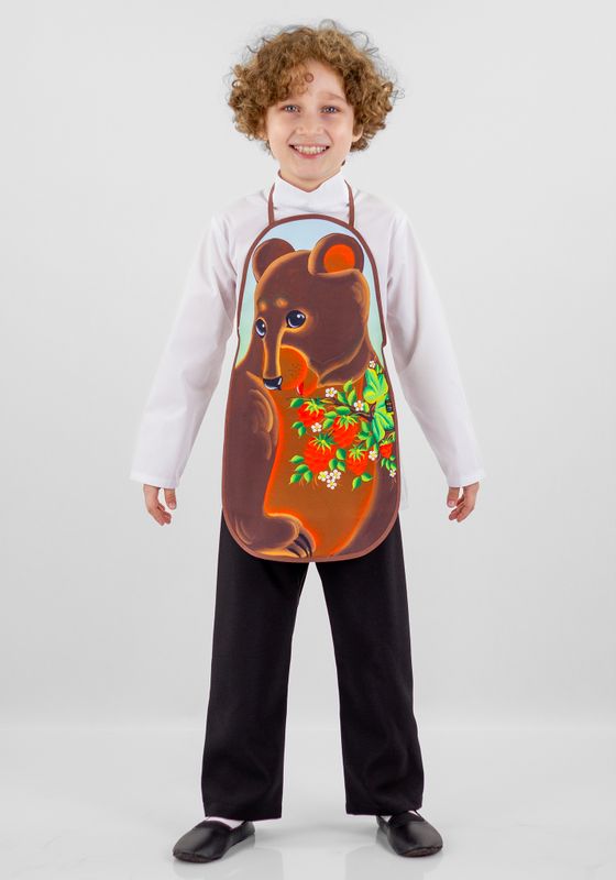 Медведь фартучек Карнавальный фартучек предназначен для выступлений на концертах и творческих конкурсах, утренниках. Простое решение для создания яркого образа!! Фартучек Медведь выполнен из ткани габардин, регулируется по размеру и фиксируется на шее и талии завязками. Габардин - 100% полиэстер плотность 175-190 г/м². Плотный материал с матовой поверхностью, который не тянется, не деформируется во время использования, долговечен и хорошо держит форму. Изделие закрепляется спереди, закрывая грудь и бедра. Длина фартучка - 51 см, ширина - 34 см. Срезы обработаны косой хлопковой однотонной бейкой. Для фиксации на шее и талии ребенка на фартуке закреплены завязки длиной 50 см. Оригинальный принт создан художниками Мастерской Ангел и нанесен при помощи сублимационной печати гипоаллергенными красками - они сохраняют яркость после 100 стирок и не выгорают со временем. Рекомендуется стирать фартучек в обычной стиральной машинке или вручную при температуре 30°C. Утюжить с изнаночной стороны при температуре не выше 150°С. Хранить изделие защищённым от пыли и дневного света, чтобы оно выглядело как новое много лет. Больше разнообразных фартучков смотрите в разделе Фартучковый театр.
