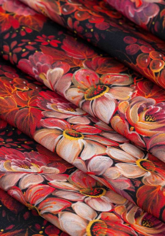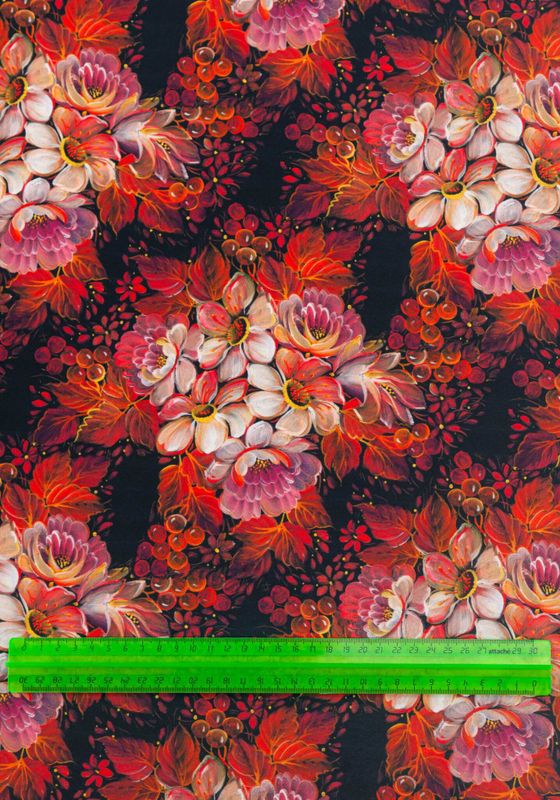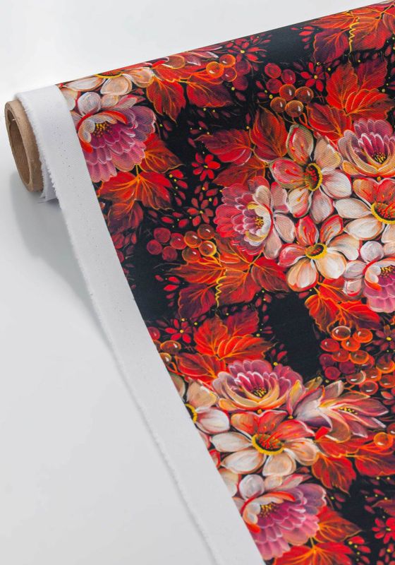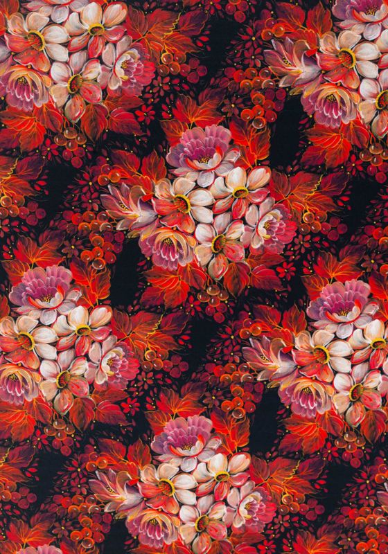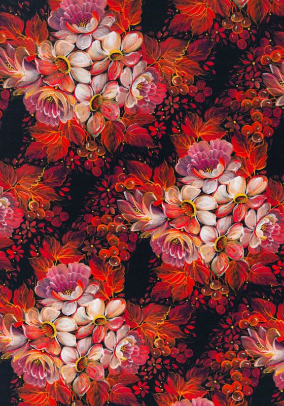 Ткань «Расписная Осень» — Урало-Сибирская роспись с русскими народными узорами. Мастерская Ангел создаёт ткань по канонам русских традиций. Ткань Урало-Сибирская - это рисунок, созданный в Мастерской Ангел художниками по росписи.«Расписная Осень» — пламенные цвета осени на ткани. Яркие цвета осеннего заката воплощены в сказочных цветах на темном фоне.Мастерская Ангел создает ткань на любом виде материала: габардин, шифон, креп-сатин. Вы можете подобрать ткань для пошива карнавальных костюмов или нарядов для выступления на сцене, декора интерьера, пошива рубах, сарафанов, кокошников, блуз и юбок. Карнавальный костюм, пошитый из ткани Урало-сибирская роспись, идеально подходит для сценических выступлений ансамблей русской народной песни и танца, фольклорных и народных коллективов. Ткань удобно стирать в обычной машинке при температуре 40°С градусов, сохраняется насыщенность цвета и формы. Более подробную информацию о свойствах смотрите в разделе Характеристики.Больше тканей в русском народном стиле для воплощения ваших идей смотрите в разделе Ткани для костюмов.