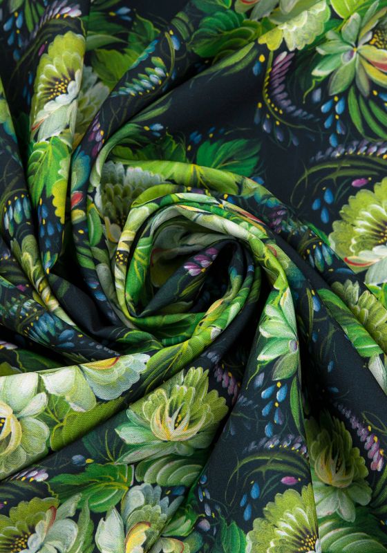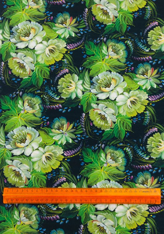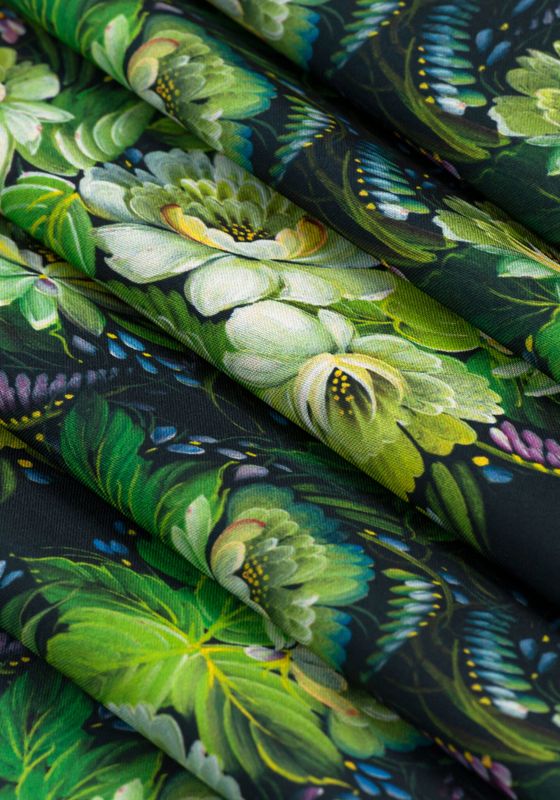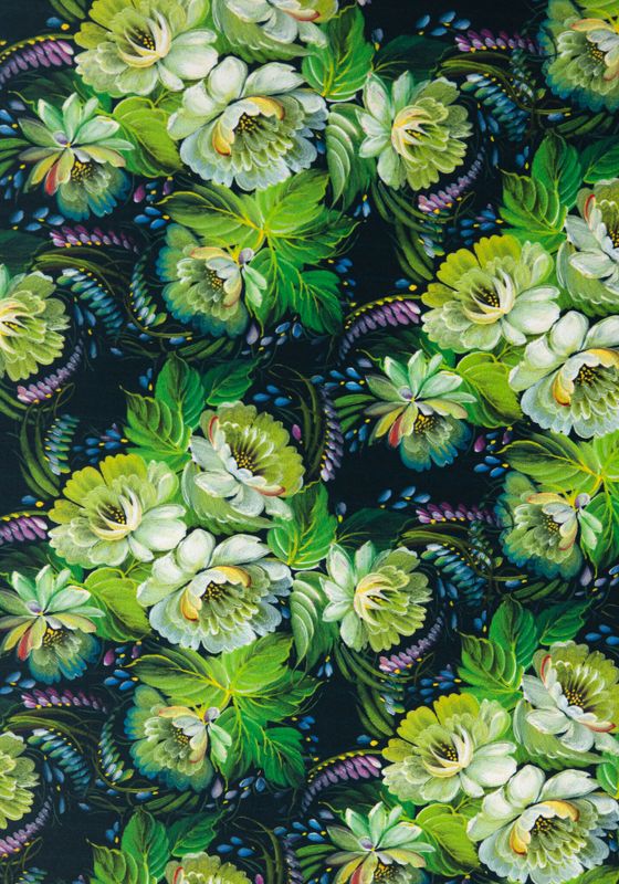 Ткань «Васнецовское Лето» — Урало-Сибирская роспись с русскими народными узорами. Мастерская Ангел создаёт ткань по канонам русских традиций. Ткань «Васнецовское Лето» - это рисунок, созданный в Мастерской Ангел художниками по росписи.«Васнецовское Лето» — нежные цвета сказочных бутонов на ткани. Темный фон выигрышно обыгрывает распустившиеся цветы.Мастерская Ангел создает ткань на любом виде материала: габардин, шифон, креп-сатин. Вы можете подобрать ткань для пошива карнавальных костюмов или нарядов для выступления на сцене, декора интерьера, пошива рубах, сарафанов, кокошников, блуз и юбок. Карнавальный костюм, пошитый из ткани «Васнецовское Лето», идеально подходит для сценических выступлений ансамблей русской народной песни и танца, фольклорных и народных коллективов. Ткань удобно стирать в обычной машинке при температуре 40°С градусов, сохраняетсянасыщенность цвета и формы. Больше тканей в русском народном стиле для воплощения ваших идей смотрите в разделе Ткани для костюмов.