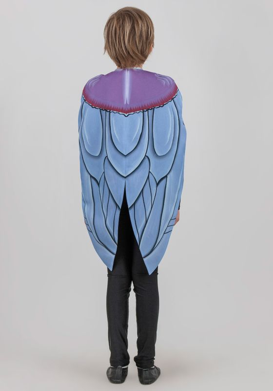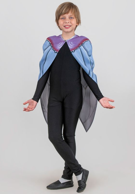 Фрак Комара. Детский карнавальный наряд, фрак накидка «Комар», создаст яркий и веселый образ насекомого на утреннике, открытом занятии, творческом конкурсе или театральной постановке. Такое решение, удобно в случаях, когда в мероприятии задействована целая группа актеров. Комар — главный герой сказки «Муха-Цокотуха» Корнея Чуковского: «Вдруг откуда-то летит Маленький Комарик, И в руке его горит Маленький фонарик». Фрак особого покроя выполнен в виде цельнокроеной накидки без рукавов, которая переходит в длинные узкие фалды сзади. Фрак, выполнен из плотного габардина на подкладке из полиэстера. Габардин, это плотная рельефная ткань с высокой стойкостью к изнашиванию. Материал не растягивается, не деформируется после стирки, способен хорошо сохранять форму. По краям фрака проходит отделочная строчка. Горловина округлой формы, обработана косой бейкой. Застёжка спереди, на навесную петлю и пуговицу. Изюминка модели является дизайнерский принт, имитирующий окрас спинки насекомого. Каждая деталь была расписана вручную, после чего рисунок был перенесен на ткань с помощью компьютерной сублимации. Фрак «Комар», подойдет как мальчикам, так и девочкам на 5-8 лет с ростом от 116 до 134 см. Правильный уход продлит срок службы изделия. Рекомендована бережная стирка при 30°С., без агрессивных моющих средств и хранение в защищенном от пыли и дневного света месте. Фрак Комара, вы можете сделать самостоятельно, и в два раза выгоднее приобретя набор для шитья. Набор для рукоделия, включает в себя все необходимые материалы для самостоятельного изготовления изделия: инструкцию по пошиву, ткань с нанесенными деталями кроя, швейную фурнитуру. Больше костюмов насекомых для детей смотрите по ссылке ссылке.