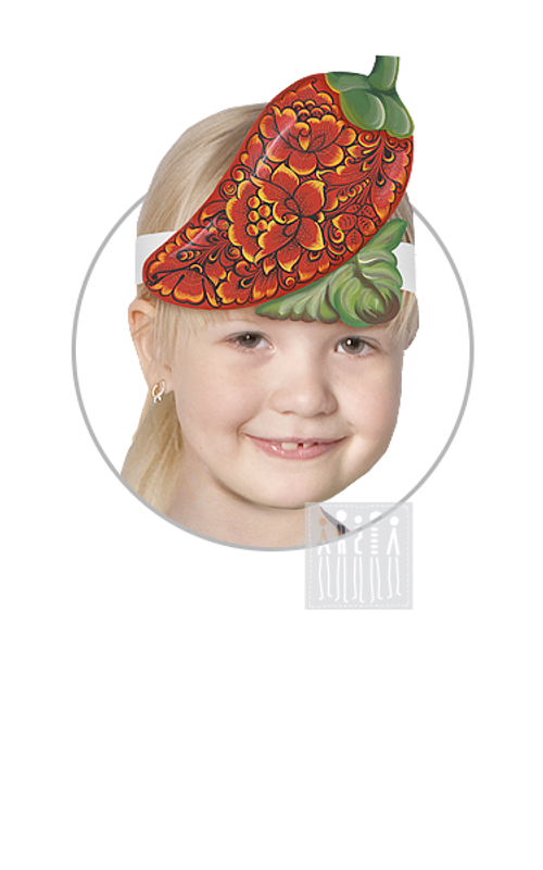 Головной убор - маска Перчик с Хохломской росписью Детская карнавальная маска Перчик с Хохломской росписью из фетра на резинке универсального размера для девочки или мальчика от 3-х лет. Эластичная мягкая резинка шириной 2 см. крепко пришита с изнаночной стороны, комфортно садится, не мешает и не тянет. Гипоаллергенный фетр толщиной 3 мм. плотный и приятный на ощупь. Такой нетканый материал войлочного типа отлично держит форму и не мнется, не имеет постороннего запаха. Маска практична и долговечна: прочная износостойкая ткань не выцветает и сохраняет первоначальный внешний вид даже после многочисленных стирок. Из-за небольшого размера и плоской формы её очень удобно хранить. Можно стирать вручную при температуре 30°С. Изделие не выкручивать, сушить в расправленном виде. Недорогой и стильный оригинальный аксессуар для различных мероприятий. Идеальный вариант для выступления в детский сад, на утренник или для детского Дня рождения. Больше масок из фетра смотрите в разделе Маски для детей.