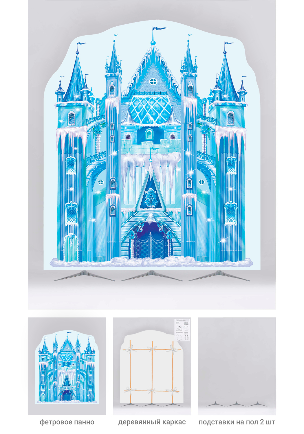 Декорация из фетра «Хрустальный замок» Декорация предназначена для оформления сцен, музыкальных и актовых залов, театрализованных постановок в детских садах, школах и развивающих центрах. Оформляя музыкальный зал, вы создаете предметно-пространственную развивающую и образовательную среду для детей всех возрастов. Размер изделия: высота 150 см., ширина 130 см. Возможно отклонение от заявленных размеров на 1,5-3% - стандартная величина усадки материала. Изделие с тремя вариантами комплектации на выбор: только панно / панно с деревянным каркасом / панно с деревянным каркасом и напольными подставками из пластика. В зависимости от выбора комплектации декорация используется как настенное панно или устанавливается при помощи комплекта держателей и подставок. Закрепленная на каркасе декорация легко сдвигается и заменяется. Декорация изготовлена из плотного фетра - 100% полиэстер, толщина 2-3 мм. Материал плотный, жесткий, хорошо держит форму, характерно наличие ворсинок. Яркий рисунок нанесен при помощи сублимационной печати, стойкими гипоаллергенными чернилами, на современном японском оборудовании Mimaki. Для сохранности, во время транспортировки, декорация поставляется на листе фетра в рулоне. Перед использованием необходимо вырезать декорацию по контуру рисунка. Проутюжить с изнаночной стороны паром при температуре 110°C. В случае выбора варианта с каркасом, следуя инструкции, самостоятельно пришить завязки и закрепить каркас. При выборе варианта с напольными подставками - закрепить каркас на подставках. Уход: загрязнения чистить мыльным пенным раствором при помощи мягкой губки. Хранить в развернутом виде или аккуратно свернутом в рулон, избегая заломов. Если заломы все же появились, то необходимо проутюжить декорацию с паром с изнаночной стороны при температуре 110°C. Больше идей для оформления детского праздника смотрите в разделе Занавесы, Фетровые декорации и Ширмы.