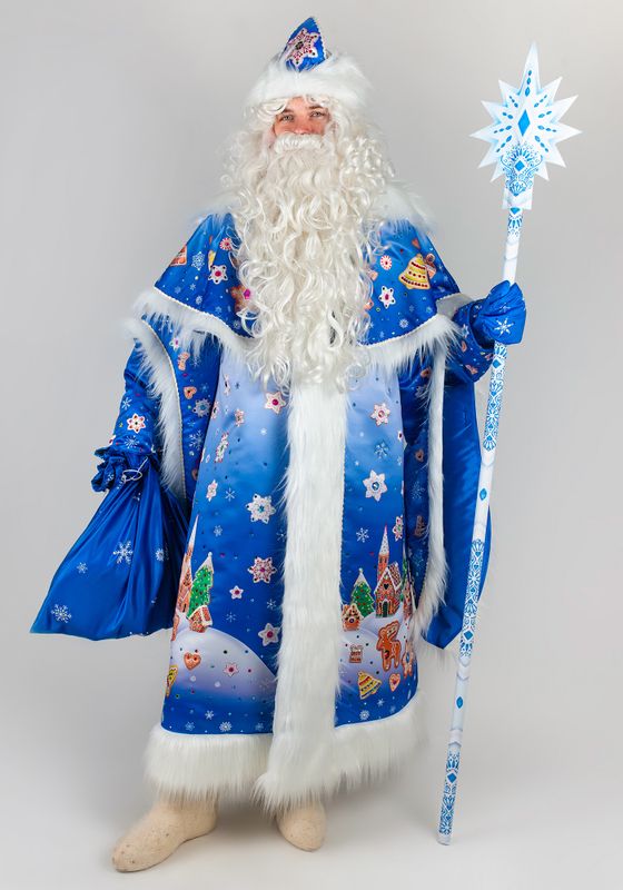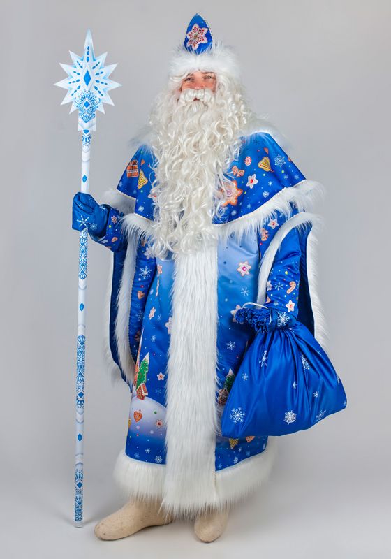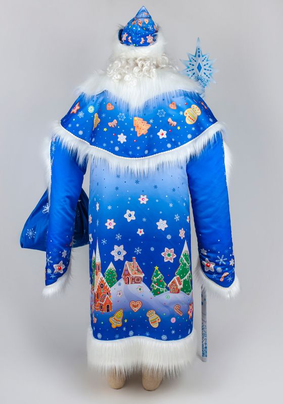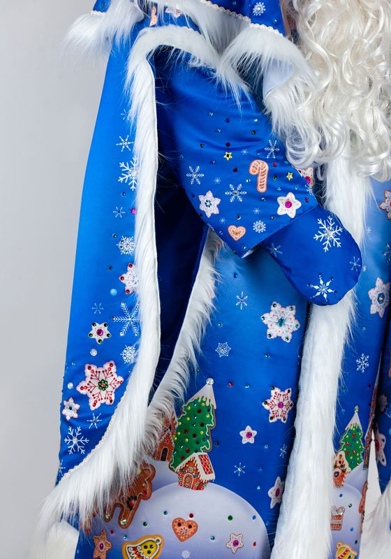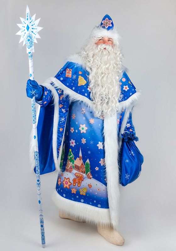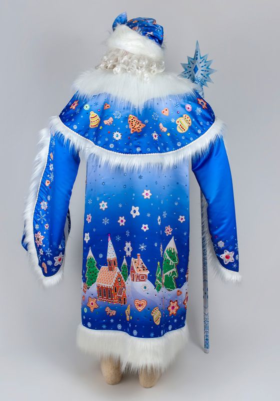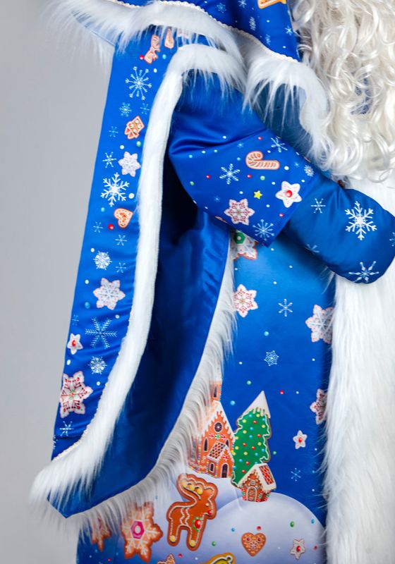 Дед Мороз Тульский Пряник Карнавальный костюм Деда Мороза Тульский пряник для праздника Нового Года и Рождества. Подойдет для образов на новогодние утренники и костюмированные фотосессии, для аниматоров и актеров. Костюм Деда Мороза Тульский пряник будет ярким акцентом в костюмерной детского сада!В костюм Деда Мороза Тульский пряник входят: шуба, пелерина, шапка, рукавицы, мешок из материала сатен. Сатен — глянцевая ткань, устойчивая к деформации и выцветанию. Материал с гладкой поверхностью, шелковистый на ощупь благодаря сатиновому переплетению.Шуба Деда Мороза свободного силуэта с двойными рукавами на подкладке из стежки. Декорирована длинноворсовым мехом белого окраса. Шубка застегивается спереди на пуговицы. Для регулировки по фигуре воспользуйтесь завязками из тесьмы с внутренней стороны шубки.Шапка с отворотом из меха, большие рукавицы на подкладке из стежки, вместительный мешок для подарков. Рисунок костюма Деда Мороза Тульский пряник создан дизайнерами Мастерской Ангел. Принт нанесен при помощи сублимационной печати. В сублимационной печати используют гипоаллергенные краски - они сохраняют яркость после 100 стирок, не выгорают со временем.Для костюма Деда Мороза рекомендуется ручная стирка при температуре 30°C. Мех расчесывать во влажном виде. Для предотвращения статического электричества мех обрабатывается антистатиком. Костюм Деда Мороза, когда не используете, храните защищенным от пыли и дневного света, и тогда ваш костюм будет выглядеть как новый много лет. Больше новогодних костюмов смотрите в разделе костюмы для взрослых к Новому году.
