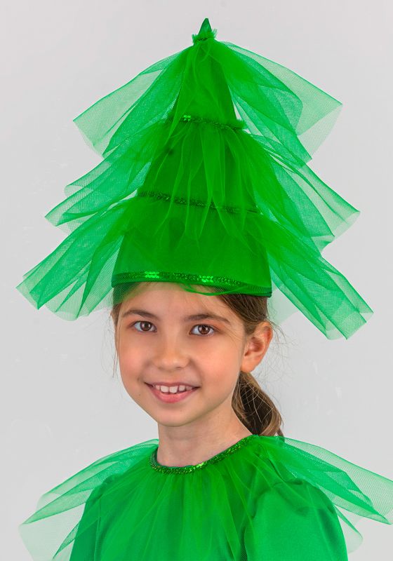 Елка ( головной убор ) Шапка-колпачок - часть маскарадного костюма Елки. Он выполнен из креп-сатина на жесткой основе. Убор украшен блестящей сеткой и пайетками. Подкладка колпачка хлопчатобумажная. Головной убор Елки достаточно глубокий, для фиксации, чтобы он не упал во время танца, у него есть резиночка. Головной убор сочетается с полупончо или платьем. Елочка - главный атрибут Нового года. Девочка в таком костюме может участвовать в новогодних костюмированных представлениях или в спектаклях. Шапка Елка прослужит вам много лет. Храните ее в защищенном от света и пыли месте. "Праздник мы встречаем. Елку наряжаем, Вешаем игрушки. Шарики, хлопушки”.