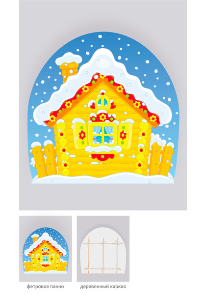 - 150см*150см, в избе / Фетровое панно + Деревянный каркас + Напольные подставки