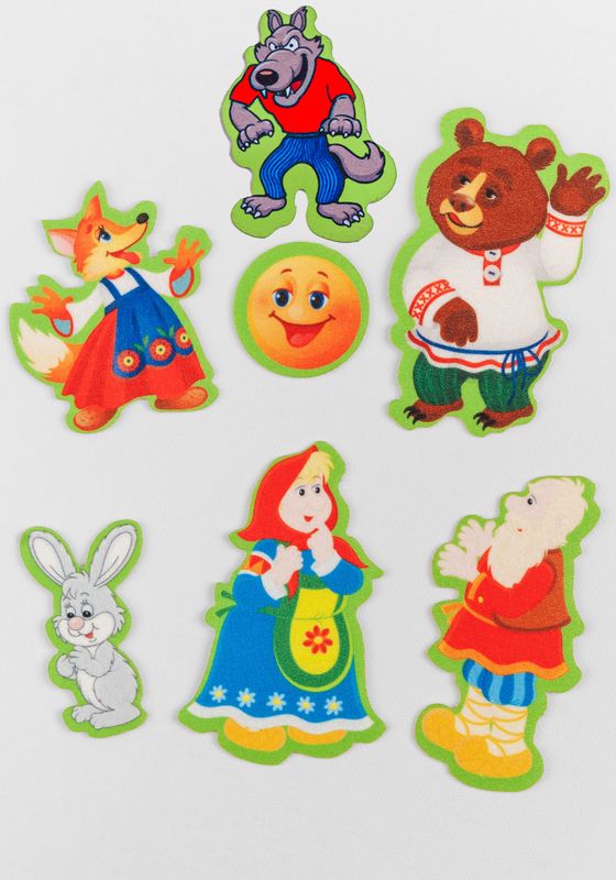 Плоскостной театр на липучке / Сказка КолобокИгровой развивающий комплект для детей — плоскостной театр на липучке сказка "Колобок". В комплект входят: - лист материала с размерами 29 см * 22 см с персонажами сказки: колобок, дед, бабка, медведь, заяц, лиса, волк.- круглые липучки с клеевым покрытием - 12 шт.Набор изготовлен из Фетра толщиной 2-3 мм, 100% полиэстер. Фетр - нетканый материал войлочного типа, прочный, пластичный, приятный на ощупь. Яркий, красочный рисунок нанесен на ткань с помощью сублимационной печати. Для печати используют гипоаллергенные стойкие краски. Перед началом игры аккуратно вырезать сказочные персонажи из фетра и закрепить липучки с изнаночной стороны. Плоскостной театр на липучке служит как учебно-методическое пособие для развития детей в процессе инсценировки сказки и сюжетных игр. Набор поможет в развитии воображения, восприятия цвета и образов, в развитии мелкой моторики. Поможет формированию положительного отношения и интерес к фольклорным произведениям и художественной литературы через театрализованную игру. Изделие прослужит несколько десятилетий, если за ним бережно ухаживать. Стирайте его вручную в прохладной воде, храните в защищенном от пыли и дневного света месте.