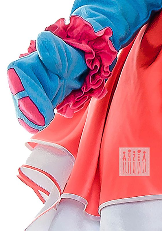 Бегемотиха (ростовая кукла для взрослых) Ростовая кукла Бегемотиха предназначена для спектаклей, концертов, народных гуляний, игр на свежем воздухе. Состоит из головного убора, рубахи, штанов с юбкой, варежек и тапок. Костюм выполнен из флиса – это нетканый мягкий ворсистый материал синтетического происхождения. Имеет такие достоинства как гипоаллергенность, антибактериальность, воздухопроницаемость, износостойкость, повышенная тактильная комфортность. Рубаха свободного прямого силуэта длиной до середины бедра. Горловина обработана воротником-стойка. Рукава длинные, прямые, по низу вставлена резинка. Низ рукавов декорирован рюшей из флиса контрастного цвета. Края рюши обработаны на микрооверлоке. Низ обработан швом в подгибку. Застежка сзади на пуговицу по воротнику. Брюки длинные, прямого силуэта. По нижнему срезу брюк вставлена резинка и, дополнительно, петля-штрипка, которая не позволяет задираться брючине. По верхнему срезу брюк для удобства фиксации и регулировки по размеру вставлена резинка. Объемные верхние штаны из флиса на подкладке из стежки длиной ниже колен. Для объема в штаны вставлен слой синтепона. По нижнему срезу вставлена резинка и пришита рюша из контрастного флиса. Край рюши обработан на микрооверлоке. По верхнему срезу вставлена резинка для удобства фиксации и регулировки по размеру. К верху штанов прикрепляется юбка-сарафан. Двойная юбка выполнена из ткани креп-сатин двух цветов. Верхняя юбка короче нижней на 10-12 см. Низ каждой юбки обработан контрастной бейкой. Юбка на поясе с резинкой. Для дополнительной фиксации имеются широкие лямки. Объемные тапки выполнены из флиса на подкладке из стежки. Для объема в тапки добавлен синтепон. Подошва из плащевой ткани с жесткой стелькой из пенолона. Застежка сзади на липучку. Спереди тапки декорированы аппликацией из цветного флиса, имитирующей пальцы. Варежки из флиса с аппликацией также с имитацией пальцев. Верхний срез обработан швом в подгибку с открытым срезом. Для удобства фиксации предусмотрена резинка. Завершает образ головной убор-маска, имитирующая голову Бегемотихи. Выполнена из флиса на подкладке из хлопка. Маска на жестком каркасе из пенолона. Объемный нос наполнен синтепоном. Рот, уши и ноздри декорированы флисом контрастного цвета. Глаза выполнены из нескольких слоев сетки, что обеспечивает обзор и дополнительную вентиляцию. В качестве украшения использован большой бант из креп-сатина с жесткой сеткой внутри. Стирайте изделие в прохладной воде вручную, храните в специальном чехле, защищающем костюм от пыли и дневного света. Благодаря этому краски со временем не будет тускнеть.