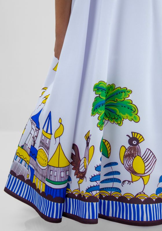 Детский фольклорно-карнавальный костюм в русском народном стиле станет ярким украшением и добавит народного колорита любому празднику или театральному выступлению. В таком костюме можно не только выступать на утренниках с русской тематикой, но и блистать на фестивалях и конкурсах российского и международного уровня. Особенностью костюма является принтованный рисунок авторской работы. Рисунок создан художниками по русскому прикладному искусству, поэтому детский костюм можно использовать даже как дидактическое пособие. Нанесение на ткань выполнено на современном промышленном оборудовании с применением стойких неаллергенных красок – это дает гарантию того, что рисунок не полиняет после стирки и не потускнеет со временем.