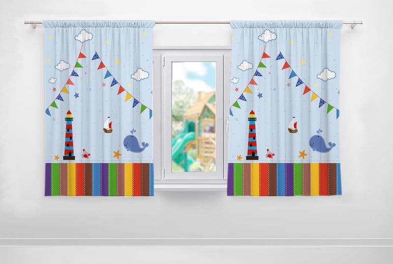 Шторы Морская тематика / Шторы в зал *стоимость Индивидуального размера рассчитает наш менеджер, после оформления заказа. Цена указана без учета индивидуальных габаритов. Готовый комплект на окно Шторы Морская тематика. В комплект входят две шторы. Стандартный размер готового комплекта: шторы - высота 2,20 см, ширина 1,55 см. Можно выбрать индивидуальный размер, и мы изготовим комплект по вашим параметрам. Шторы можно изготовить из материала на ваш выбор: блэкаут или габардин.Блэкаут - затемняющая ткань светонепроницаемого типа (blackout/dimout). В полотно вшиты черные нити, которые блокируют большую часть света. Основа из полиэстера делает изделие долговечным и простым в уходе. Полотно не теряет форму, не тускнеет после множества стирок и устойчиво к загрязнениям. Габардин - плотный материал с матовой поверхностью. Ткань не тянется и не деформируется во время использования. Материал долговечен и хорошо держит форму. Готовый комплект с креплением на шторной ленте. Повесьте на карниз при помощи крючков или проденьте шторы через отверстие для карниза. Шторы можно стирать в обычной машинке при температуре 40°С и гладить при температуре 110°С. Больше готовых штор для воплощения ваших идей смотрите в разделе Шторы.