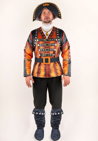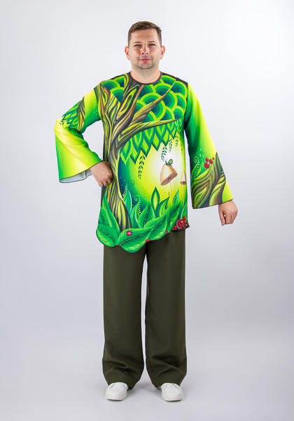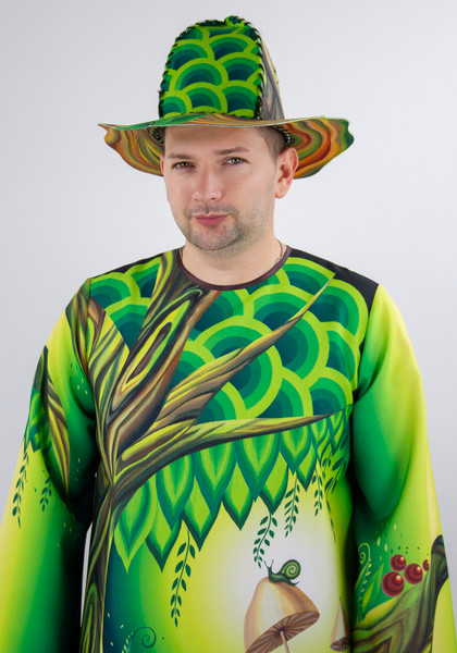 Леший костюм для взрослого Взрослый костюм Лешего создаст реалистичный и запоминающийся образ могущественного, но доброго лесного хозяина на детском утреннике или костюмированном представлении. Согласно сказкам и былинам, добрым странникам Леший указывает потерянную тропу и помогает отыскать дары природы, а злым - пропасть навсегда. Поэтому костюм Лешего украшает принтованный рисунок с изображением заболотистого леса. Принт нанесен на ткань при помощи сублимационной печати на современном промышленном оборудовании стойкими гипоаллергенными красками - не выгорают со временем и сохраняют свою яркость даже после неоднократных стирок. Костюм производится в следующих вариантах: размер 46-48 на рост 164-170 см. / размер 50-52 на рост 164-170 см. / размер 50-52 на рост 170-176 см. / размер 54-56 на рост 170-176 см. В комплект входят: рубаха, брюки и головной убор. Рубаха свободного покроя с втачными, расширяющимися книзу рукавами, выполнена из габардина – износоустойчивого материала. Края рукавов и фигурного низа обработаны микрооверлоком, а горловина - бейкой. Брюки свободного покроя из габардина имеют резинку для регулировки размера и фиксации изделия на талии. Дополняет образ фетровая шляпа с принтованным двухсторонним рисунком, изображающим лес. Поля головного убора с фигурным краем. Шляпа собрана вручную шерстяными нитками. Уход: рубаха и штаны – ручная стирка при температуре не выше 30°С, шляпа – химчистка. Храните в чехле, защищая изделия от пыли и света.