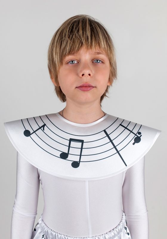 Нотка пелерина для детей Широкая круглая пелерина, для выступлений на детских утренниках, театрализованных представлениях, конкурсах. Пелерина изготавливается из ткани Креп - сатин. Материал с сатиновым переплетением нитей, с блестящей глянцевой поверхностью, 100% полиэстер. Ткань прочная, износостойкая, быстро высыхает после стирки, хорошо сохраняет форму. На ткань нанесен авторский дизайнерский рисунок с изображением нот на нотном стане. Принт выполнен на современном японском оборудовании Mimaki при помощи сублимационной печати стойкими гипоаллергенными чернилами. Срезы пелерины обработаны косой бейкой. Застёжка спереди, на пуговицу и навесную петлю. Для жёсткости и формоустойчивости, пелерина соединена с каркасом из жёсткого дублерина - 100% хлопок. Безразмерное изделие, подходит мальчикам и девочкам. Производится в двух вариантах: цвет белый/белый кант; цвет белый/черный кант. Набор для рукоделия включает в себя все необходимые материалы для самостоятельного изготовления изделия: инструкцию по пошиву, ткань с нанесенными деталями кроя, швейную фурнитуру. Рекомендации по уходу: - деликатная стирка при температуре до 30°C без отбеливателей; - не отжимать и не выкручивать; - глажка при температуре 110-150°C; - хранить в чехле, защищая от пыли и солнечного света.