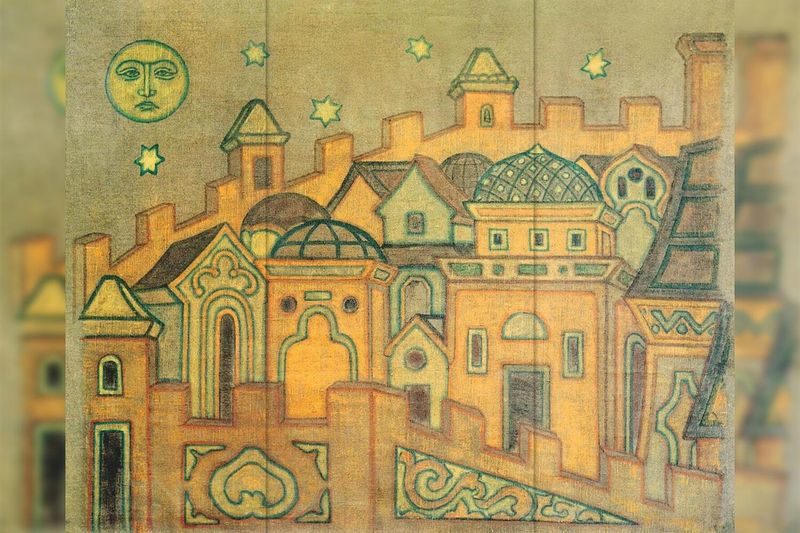 Репродукция картины Н.К. Рерих "Города" Декорация / Занавес сцены