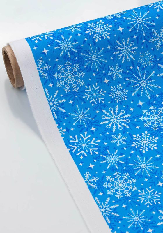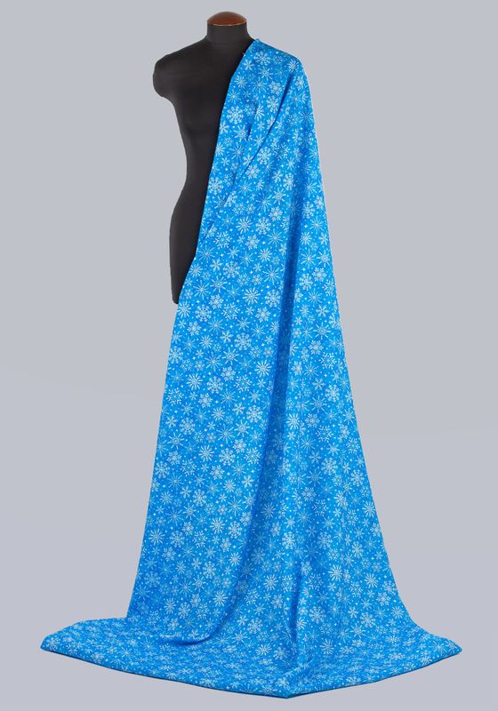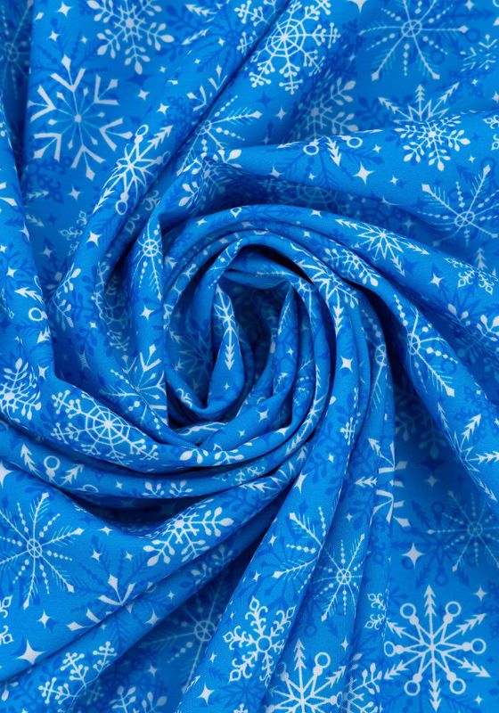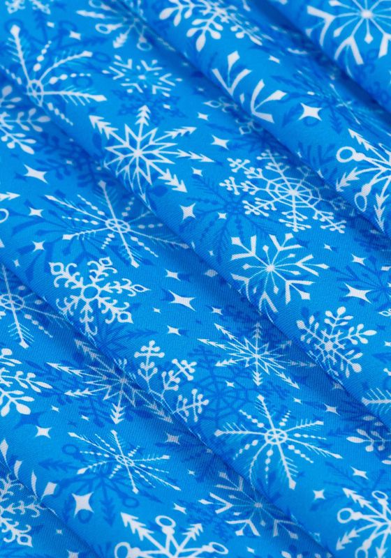 Ткань Новогодняя синяя Ткань «Новогодняя синяя» в рождественском стиле. На синий фон нанесен рисунок: белые снежинки разных размеров.Ткань «Новогодняя синяя» используется для создания новогодних карнавальных костюмов Деда Мороза и Снегурочки, костюма Зимы, пошива штор и предметов декора к Новому году.Рисунок новогодний ткани создан художниками Мастерской Ангел. Принт нанесен при помощи сублимационной печати.В сублимационной печати используют гипоаллергенные краски, они сохраняют яркость после 100 стирок, не выгорают со временем.Рекомендуется стирать ткань «Новогодняя синяя» в обычной стиральной машинке при температуре 30°C.В Мастерской Ангел вы можете купить ткань из материалов: Креп-сатина, Шифон, Габардин. Больше тканей для пошива костюмов или декора к Новому году смотрите в разделе Новогодние ткани.