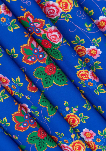 Ткань «Танцующие Колокольчики» — Урало-Сибирская роспись с русскими народными узорами. Мастерская Ангел создаёт ткань по канонам русских традиций. Ткань Урало-Сибирская это рисунок, созданный в Мастерской Ангел художниками по росписи.«Танцующие Колокольчики» — темно-синие колокольчики с нежно-фиолетовыми бутонами на ткани. Темный фон выигрышно обыгрывает распустившиеся цветы.Мастерская Ангел создает ткань на любом виде материала: габардин, шифон, креп-сатин. Вы можете подобрать ткань для пошива карнавальных костюмов или нарядов для выступления на сцене, декора интерьера, пошива рубах, сарафанов, кокошников, блуз и юбок. Карнавальный костюм пошитый из ткани Урало-сибирская роспись идеально подходит для сценических выступлений, ансамблей русской народной песни и танца, фольклорных и народных коллективов. Ткань удобно стирать в обычной машинке при температуре 40°С градусов, не нужны химчистки, она сохраняет насыщенность цвета и форму. Более подробную информацию о свойствах смотрите в разделе Характеристики.Больше тканей в русском народном стиле для воплощения ваших идей смотрите в разделе Ткани для костюмов.