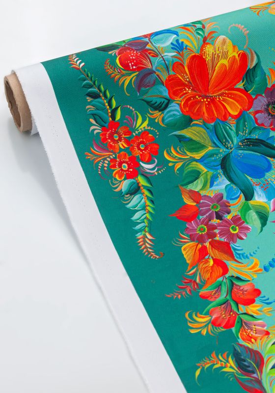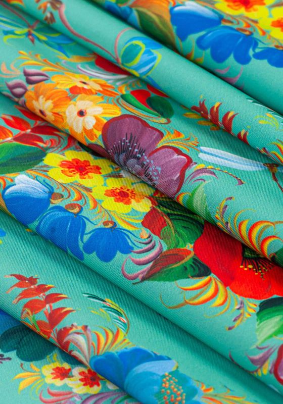 Ткань «Танец Стрекозы» - это русский народный орнамент. Ткань для пошива в традиционном русском стиле с колоритным узором Урало-сибирская роспись знают во всем мире.Традиционными считаются цвета: цветы на светло-зеленом фоне. Все эти классические цвета есть в нашей палитре ткани «Танец Стрекозы». Художники Мастерской Ангел при составлении узора оставляют самые характерные элементы, сохраняя традици русской прикладной живописи.Узор состоит из крупных деталей цветов, изображая богатую русскую природу. Такая ткань будет эффектно выглядеть на сцене и на выступлении русского народного хора или ансамбля русского народного танца. Рисунок ткани для пошива словно иллюстрация к сказке.Яркие образы сказочных цветов в узорах Урало-сибирской росписи отражают сказочность былин русской культуры. Эту прекрасную традицию сохраняют сегодня художники Мастерской Ангел, украшая ткань нарядной росписью.Ткань для карнавальных костюмов или выступлений на сцене от Мастерской Ангел можно стирать после каждого выступления. Цвета оставляют свою яркость, а фактура ткани не деформируется.Ткань для пошива русских народных костюмов, сарафана, рубахи, пелерины, кокошника, жилета, коротены, кафтана, кички рогатой, поневы, передника, сороки, картуза. Ткань «Танец Стрекозы» — это классическая палитра красок для шитья предметов одежды в исконно русском стиле для фольклорных ансамблей и народно-этнографичесских коллективов, певческих хоров. Наследие традиций русской культуры запечатлено в узорчатых рисунках на ткани Мастерской Ангел. Русский образ уместен не только для проведения тематических мероприятий. Карнавальный костюм, пошитый из ткани «Танец Стрекозы», может использоваться на праздничные выступления на масленичных гуляньях. На ткань нанесён принтованный рисунок авторской работы по уникальным эскизам, имитирующий старинный русский промысел – Урало-сибирская роспись с классическим узором.Больше тканей для пошива костюмов или декора в русском народном стиле смотрите в разделе Ткани для костюмов.В Мастерской Ангел вы можете купить русскую народную ткань из любого материала: креп-сатин, шифон, габардин.