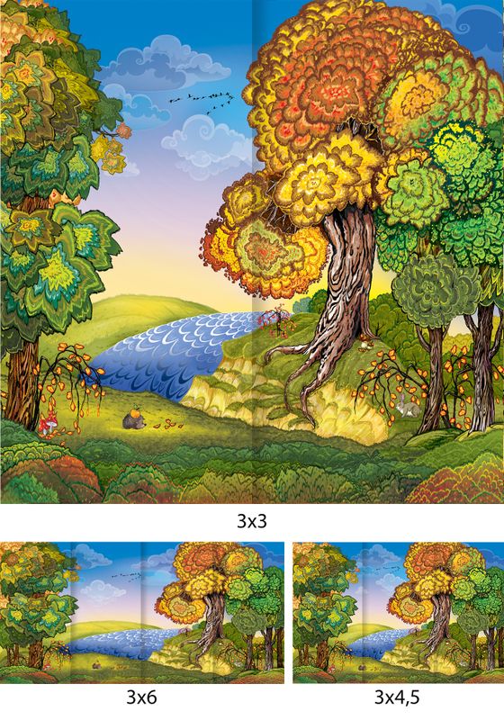 Осенняя былина - Декорация / Занавес сцены *стоимость индивидуального размера рассчитает наш менеджер после оформления заказа. Цена указана без учета индивидуальных габаритов. Оформляя музыкальный зал к утреннику в детском саду или школе, вы создаете предметно-пространственную развивающую и образовательную среду для детей всех возрастов. С новыми декорациями любое мероприятие станет запоминающимся событием! Занавес подойдет для оформления праздников с осенней тематикой: Праздник урожая, Праздник осени, День знаний, а также пригодится при постановке различных сказок. С его помощью можно создать фотозону, украсить музыкальный зал или холл на осенний период. Декорация поделена на стандартные полотна по 1,5 метра шириной — удобно стирать и утюжить. В зависимости от ширины помещения, декорация может быть размещена на любое количество полотен. Размер можно выбрать из стандартных или указать свои мерки. Материал декорации габардин - ткань полотняного переплетения, состав 100% полиэстер, плотность 180 г/м². Ткань прочная, не подвержена деформации и хорошо держит свою форму. За счет плотного переплетения материал устойчив к износу, не выцветает на солнце и легко поддается стирке, что обеспечивает долгий срок службы изделия. Набор для рукоделия включает в себя все необходимые материалы для самостоятельного изготовления изделия: инструкцию по пошиву, ткань с нанесенными деталями кроя, ленту-липучку для соединения полотен между собой. Крепление можно заказать отдельно по ссылке, либо указать один из видов крепления в комментариях к заказу: шторная лента / липучка / петли. *Цена декорации указана без учета крепления. Размер декорации при изготовлении может отличаться на 3-5% — величина стандартной усадки. После оформления заказа менеджер свяжется с вами для подтверждения и уточнения деталей. Больше идей для оформления детского праздника смотрите в разделе Декорации и Занавесы. Рекомендации по уходу: Стирка при температуре до 30°C, без отбеливателей. Глажка при температуре 110-150°C. Хранить занавес, смотанным в рулон на втулку, защищая от пыли и солнечного света.