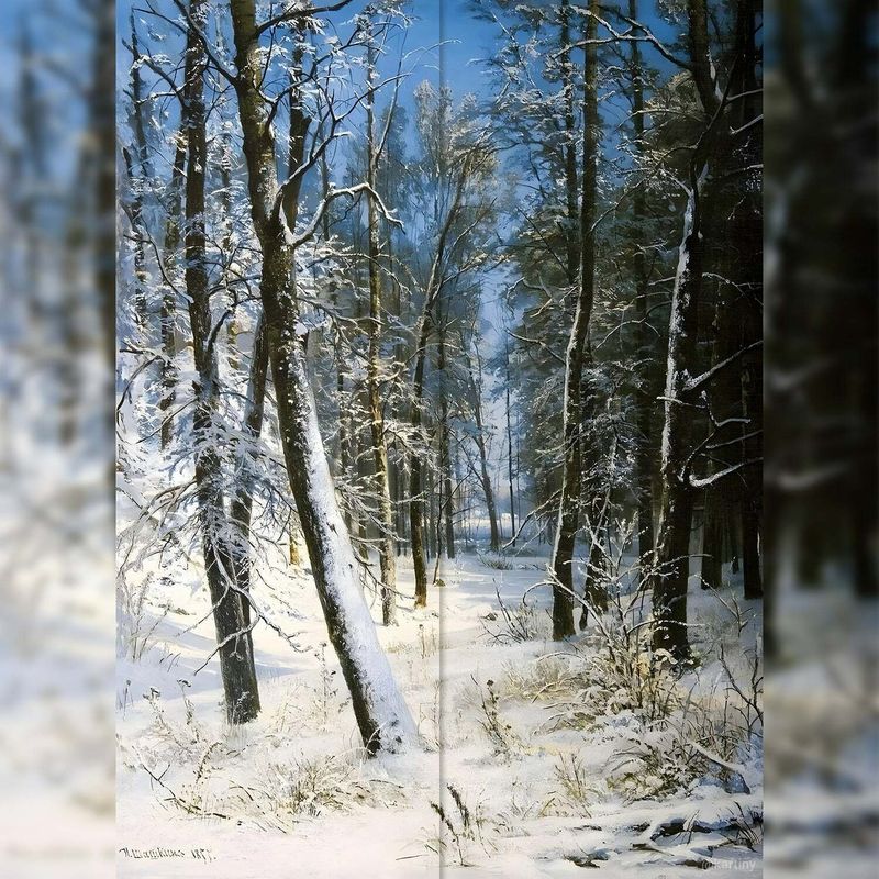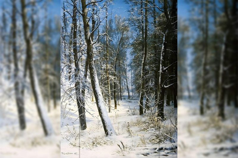 Репродукция картины И.И. Шишкин "Зима в лесу, иней" Декорация / Занавес сцены