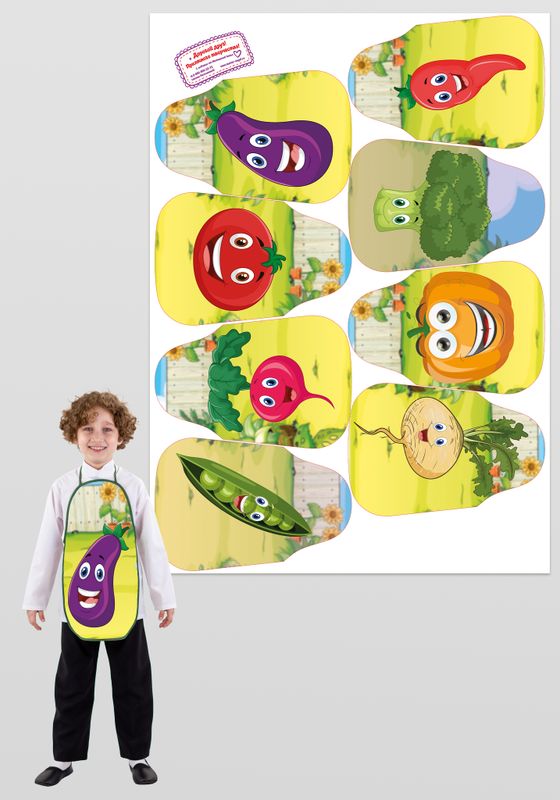 Набор материалов, для самостоятельного изготовления фартучков в количестве 8 штук - баклажан, помидор, редис, горох, перец, брокколи, тыква, репка.
